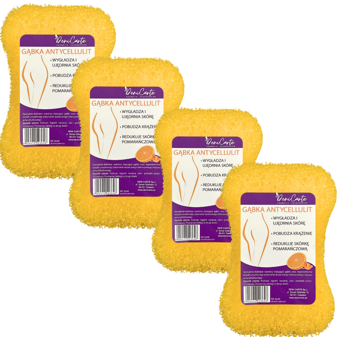 4 x Gąbka Do Kąpieli Masażu Antycellulitowa Zestaw Żółte