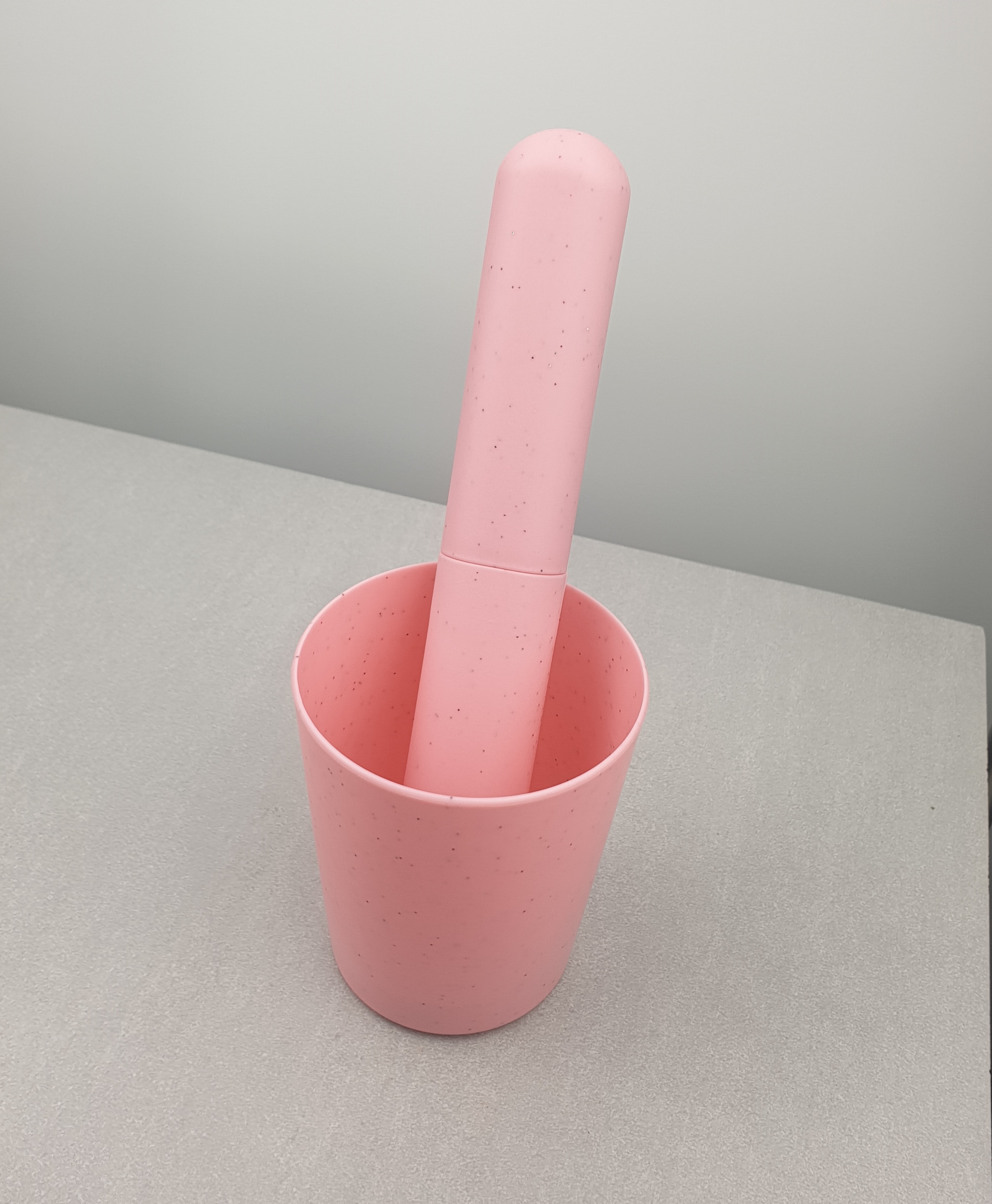 Kubek występuje w duecie z etui do szczoteczki w tym samym kolorze stanowiąc doskonały zestaw podróżny.
