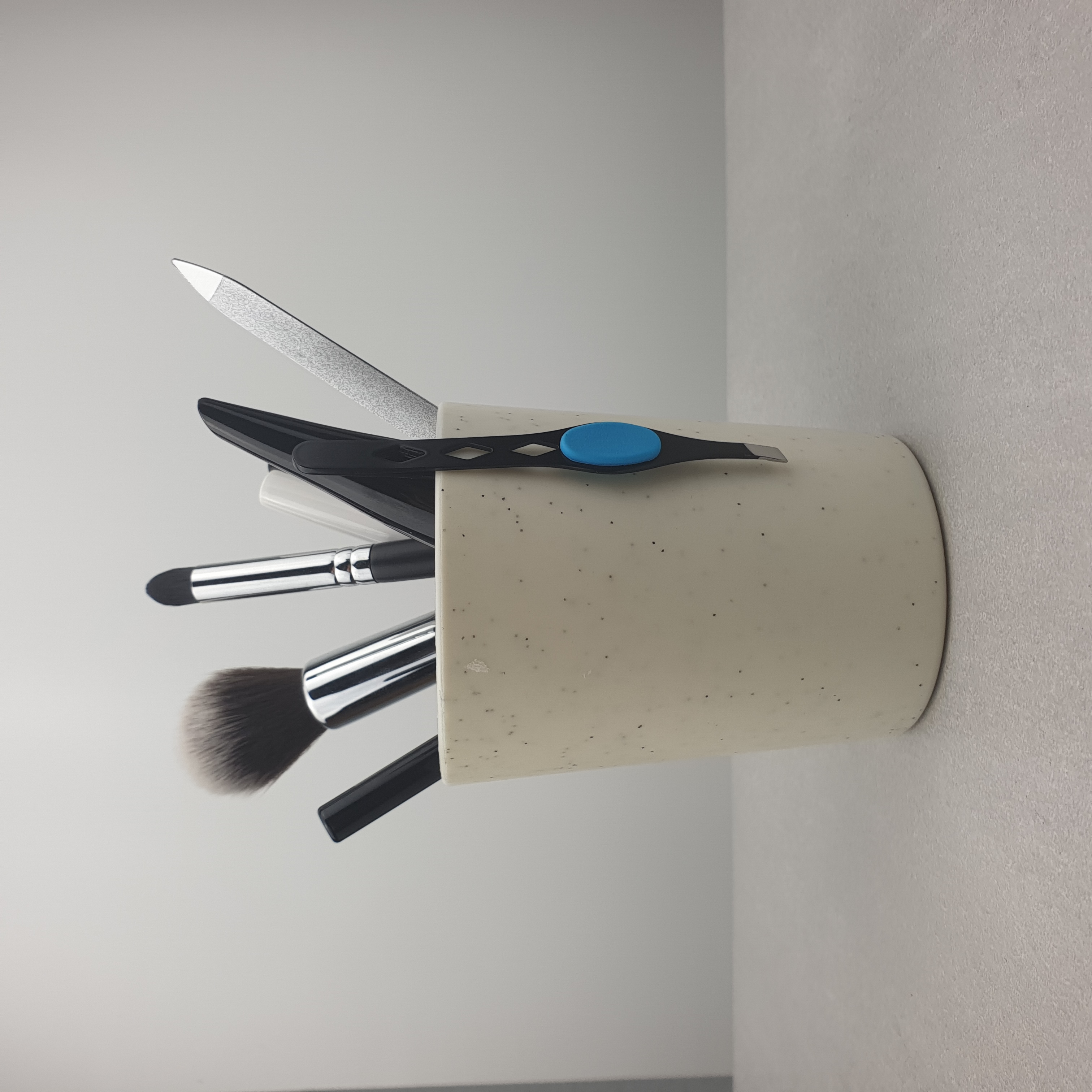 Kubek pojemnik sprawdzi się również do przechowywania kosmetyków, narzędzi do makijażu i innych akcesoriów łazienkowych.