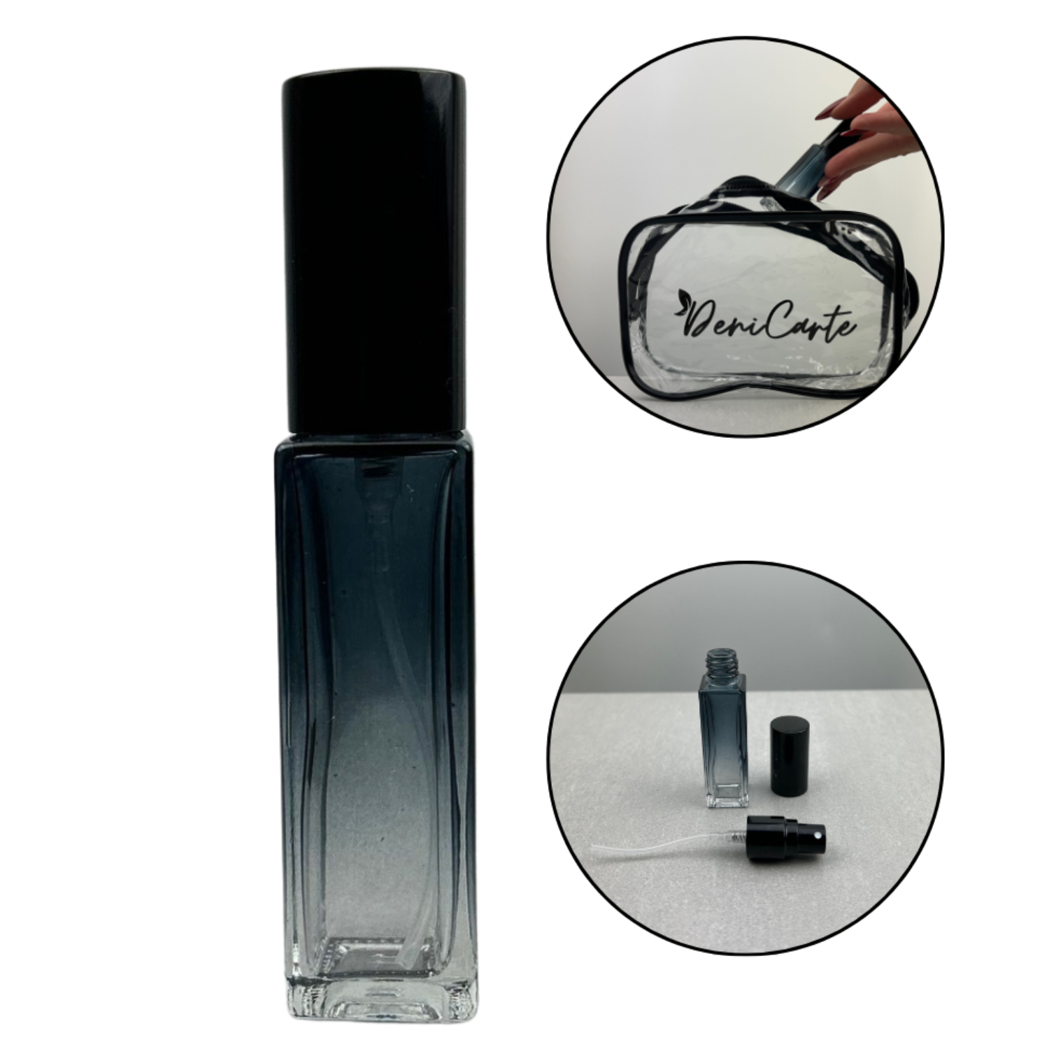 W jego skład wchodzi stylowy, szklany atomizer 10 ml w klasycznym czarnym kolorze z błyszczącym wykończeniem, a także niezbędne akcesoria: lejek, pipeta i pompka dozująca.