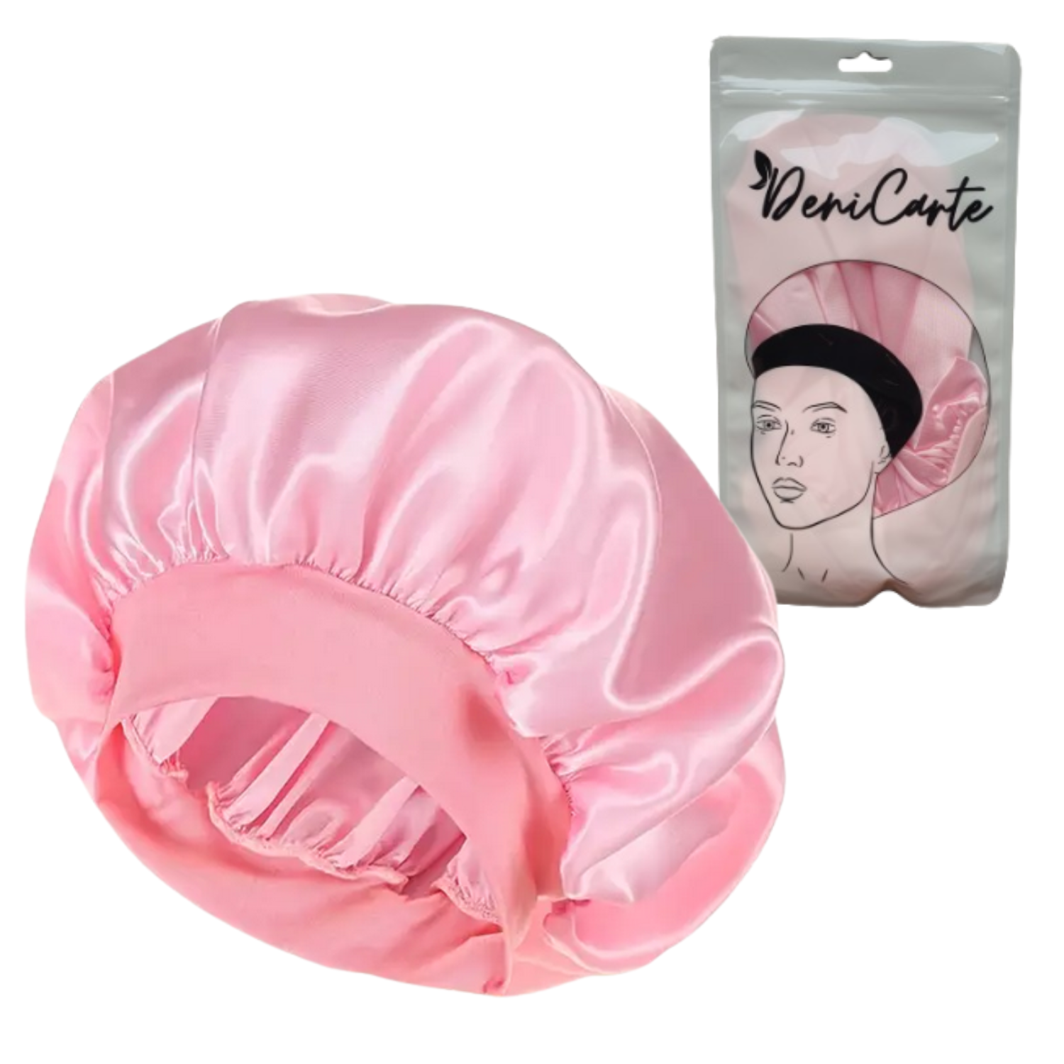 DENI CARTE SATYNOWY CZEPEK ZABEZPIECZAJĄCY WŁOSY Z SZEROKĄ GUMKĄ RÓŻOWY
