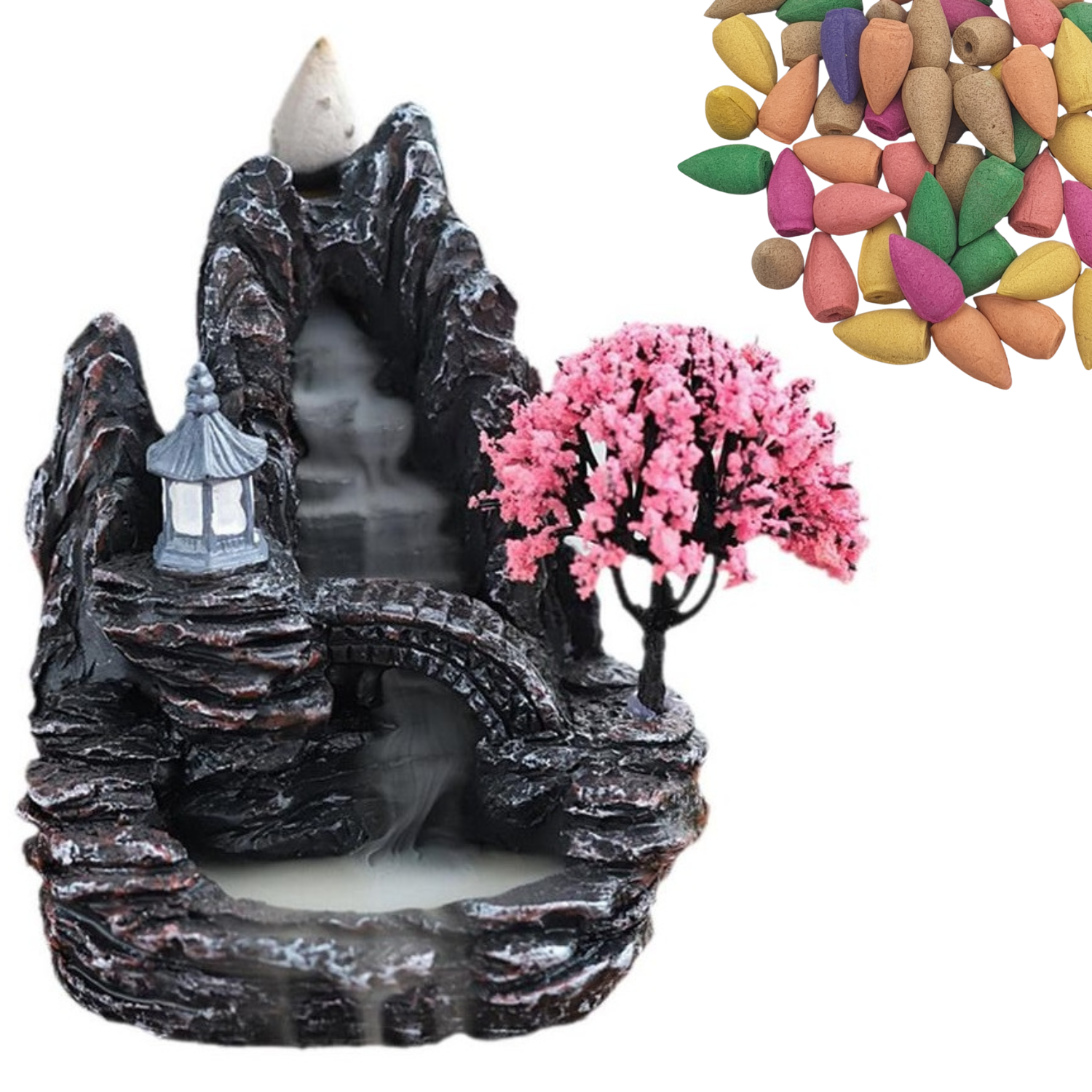 Kominek Zapachowy Kadzielnica Backflow Wodospad + 12 Kadzideł