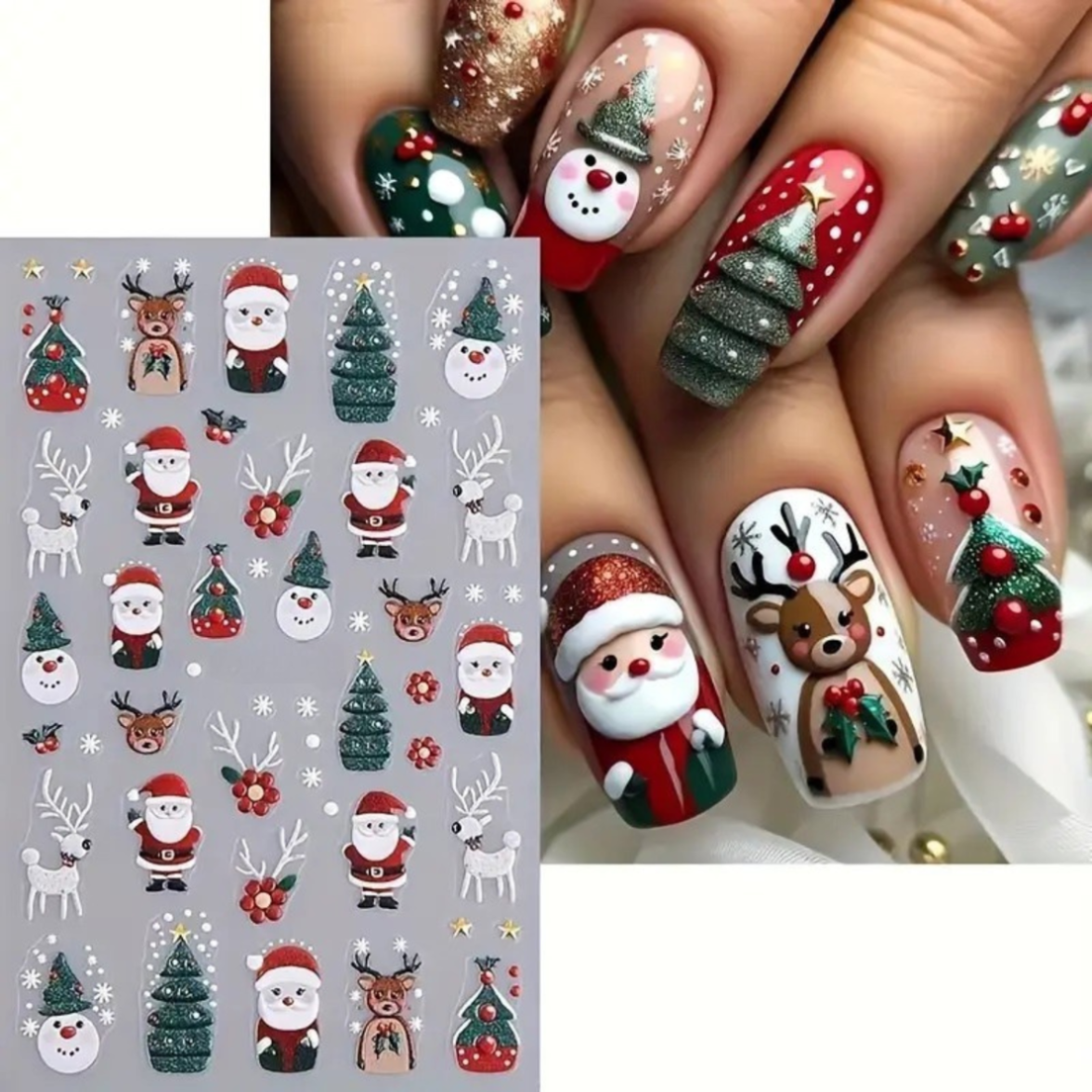 ✔️ Zimowe naklejki – nadają stylizacji wyjątkowy charakter, tworząc przytulną, grudniową atmosferę. To świetny wybór, jeśli szukasz ozdób świątecznych do manicure.
