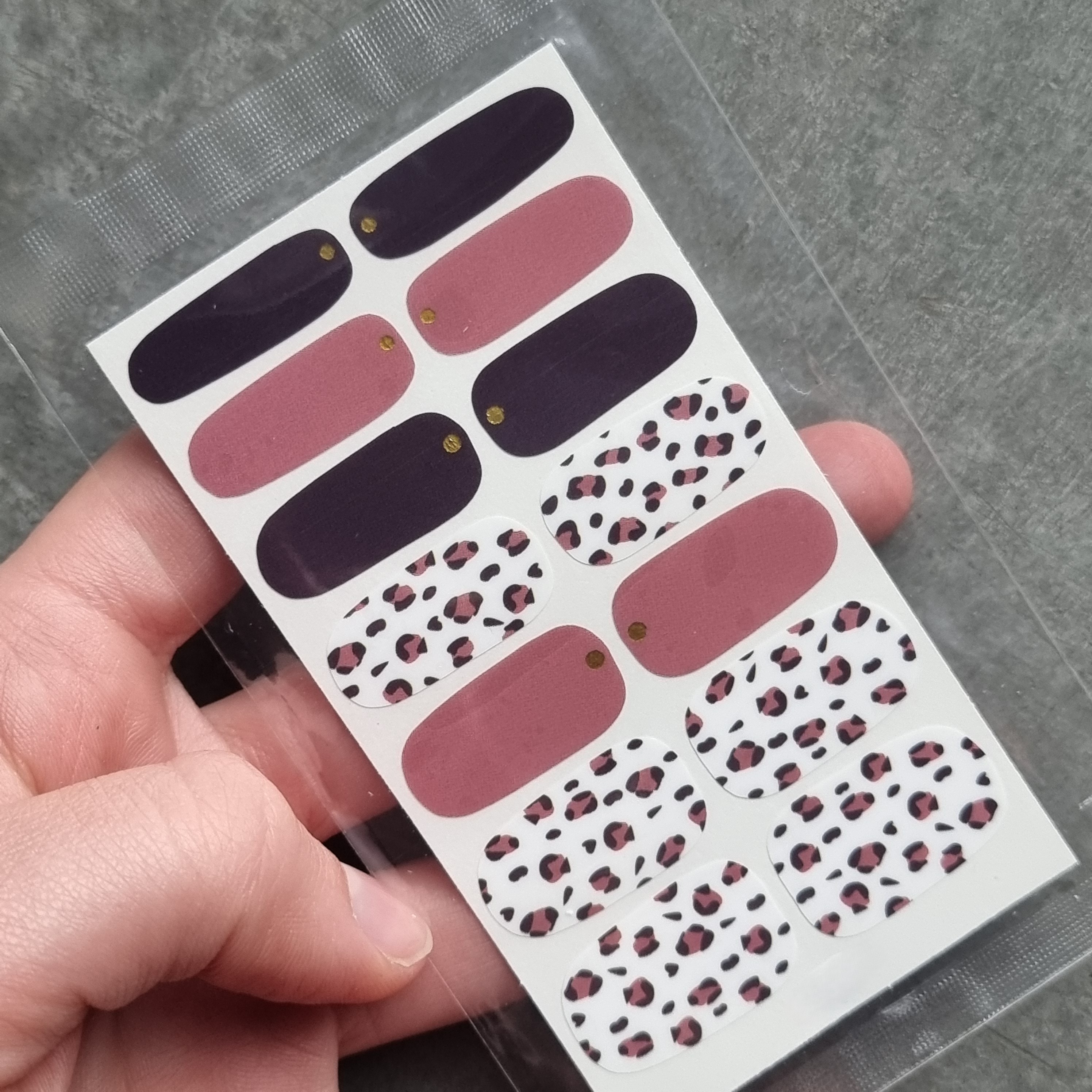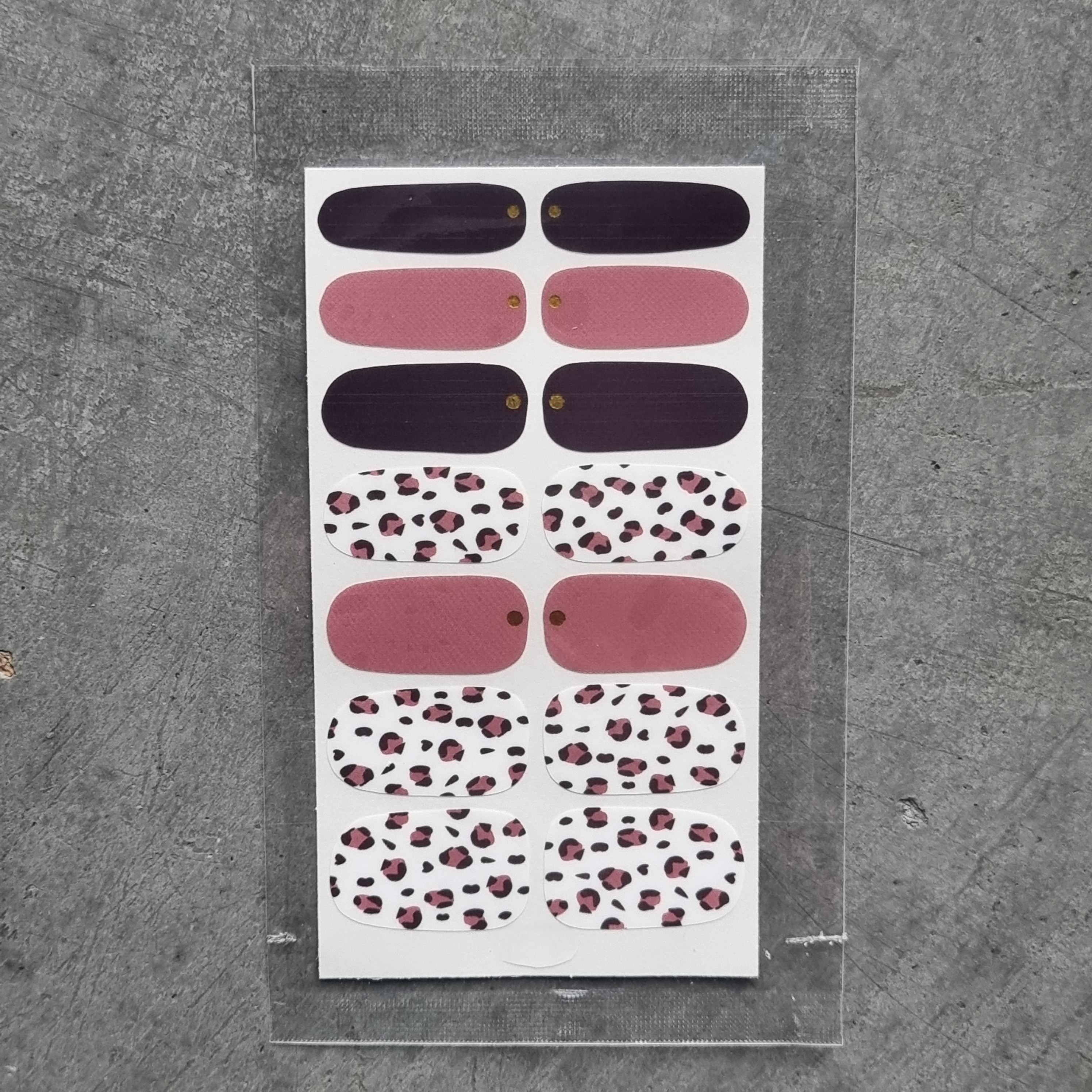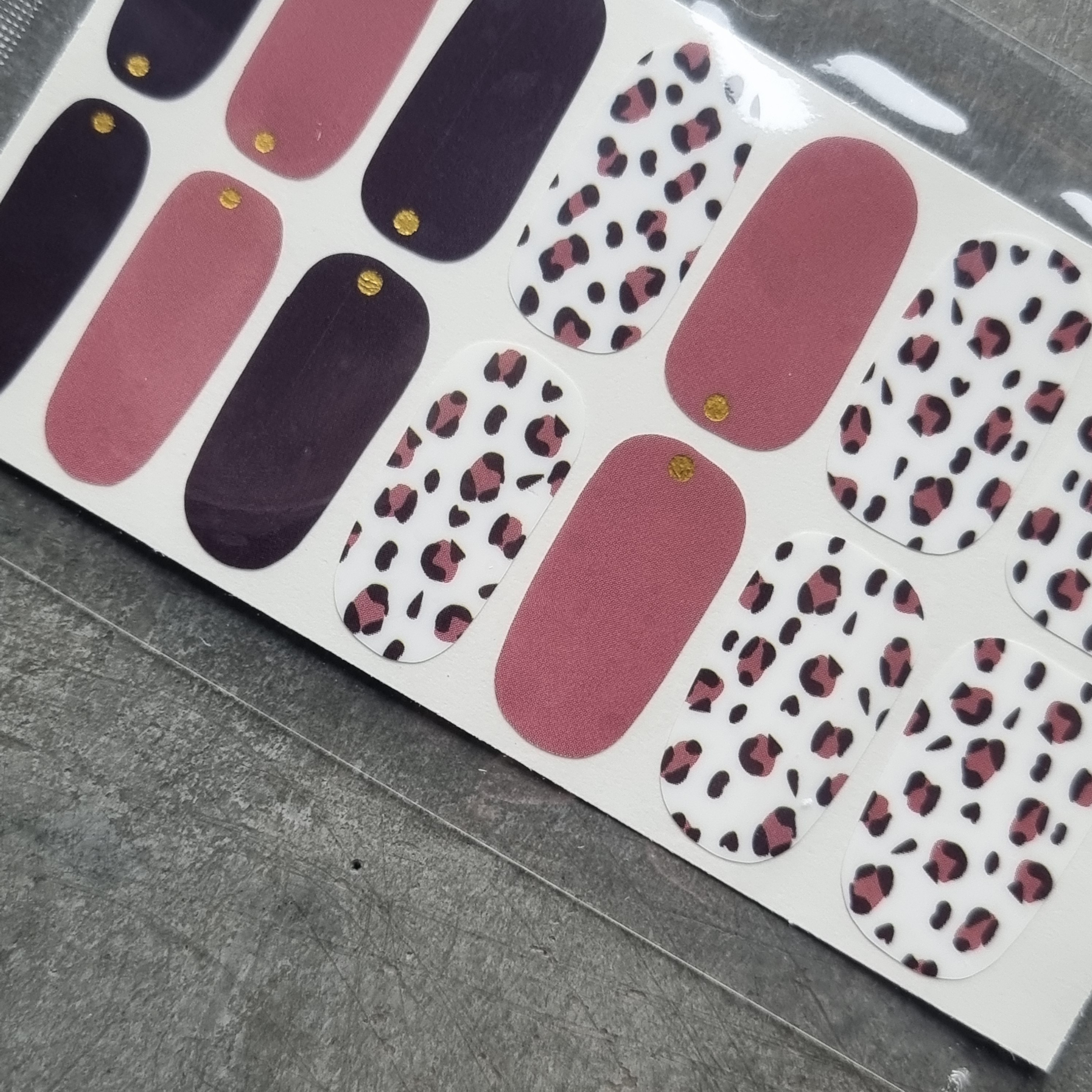 ✔️ Naklejki z panterką, złotymi elementami z odcieniami różu charakteryzują się również doskonałą przyczepnością i trwałością, dzięki czemu stylizacja wygląda świeżo i estetycznie przez długi czas.