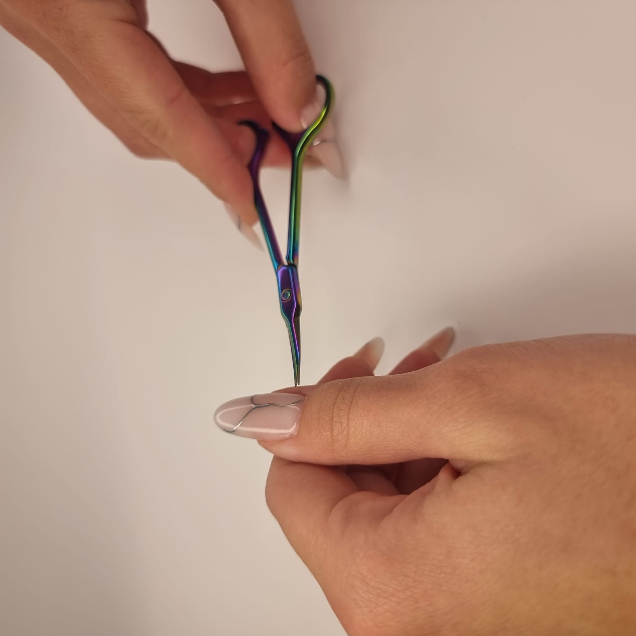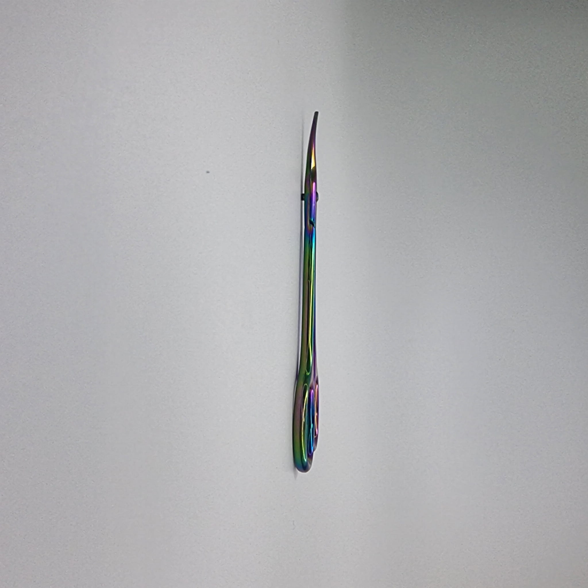 Nożyczki łączą w sobie funkcjonalność i design. Ich tęczowa powłoka sprawia, że wyglądają nowocześnie i estetycznie – to drobiazg, który ma znaczenie w codziennej pracy stylistek paznokci, gdzie liczy się zarówno jakość, jak i wygląd akcesoriów. To narzędzie, które nie tylko świetnie działa, ale też pięknie się prezentuje.
