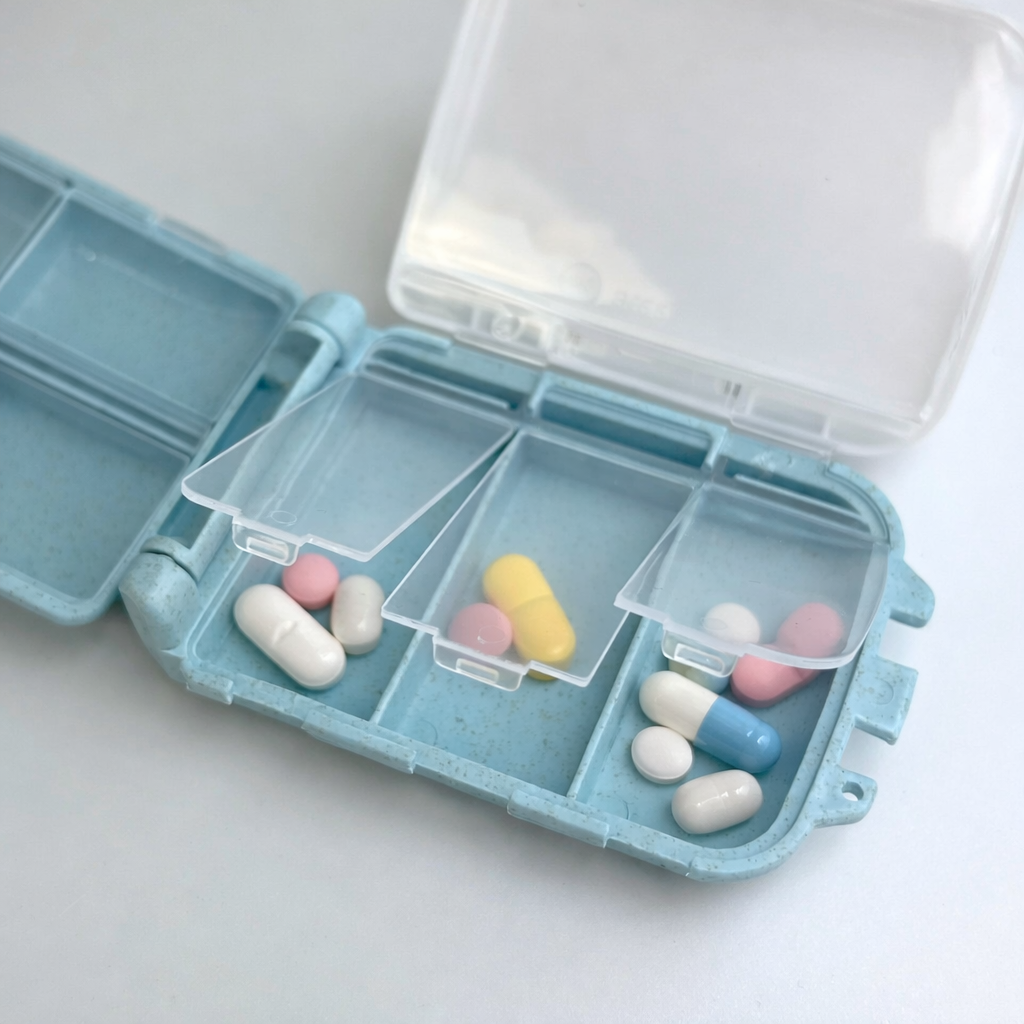 Dzięki temu łatwo można zachować regularność w przyjmowaniu leków i uniknąć pomyłek. Przegrody pomagają w organizacji, szczególnie podczas podróży lub intensywnego dnia, gdy ważna jest kontrola nad harmonogramem leczenia.