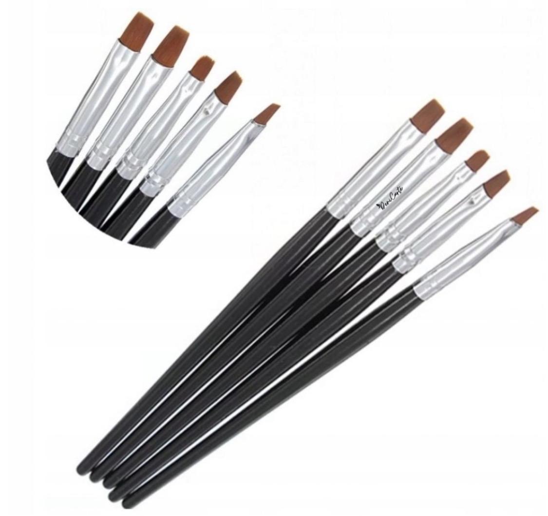 Zestaw do stylizacji paznokci to 5 pędzli wykonanych z włosia syntetycznego wysokiej jakości charakteryzującego się wytrzymałością.