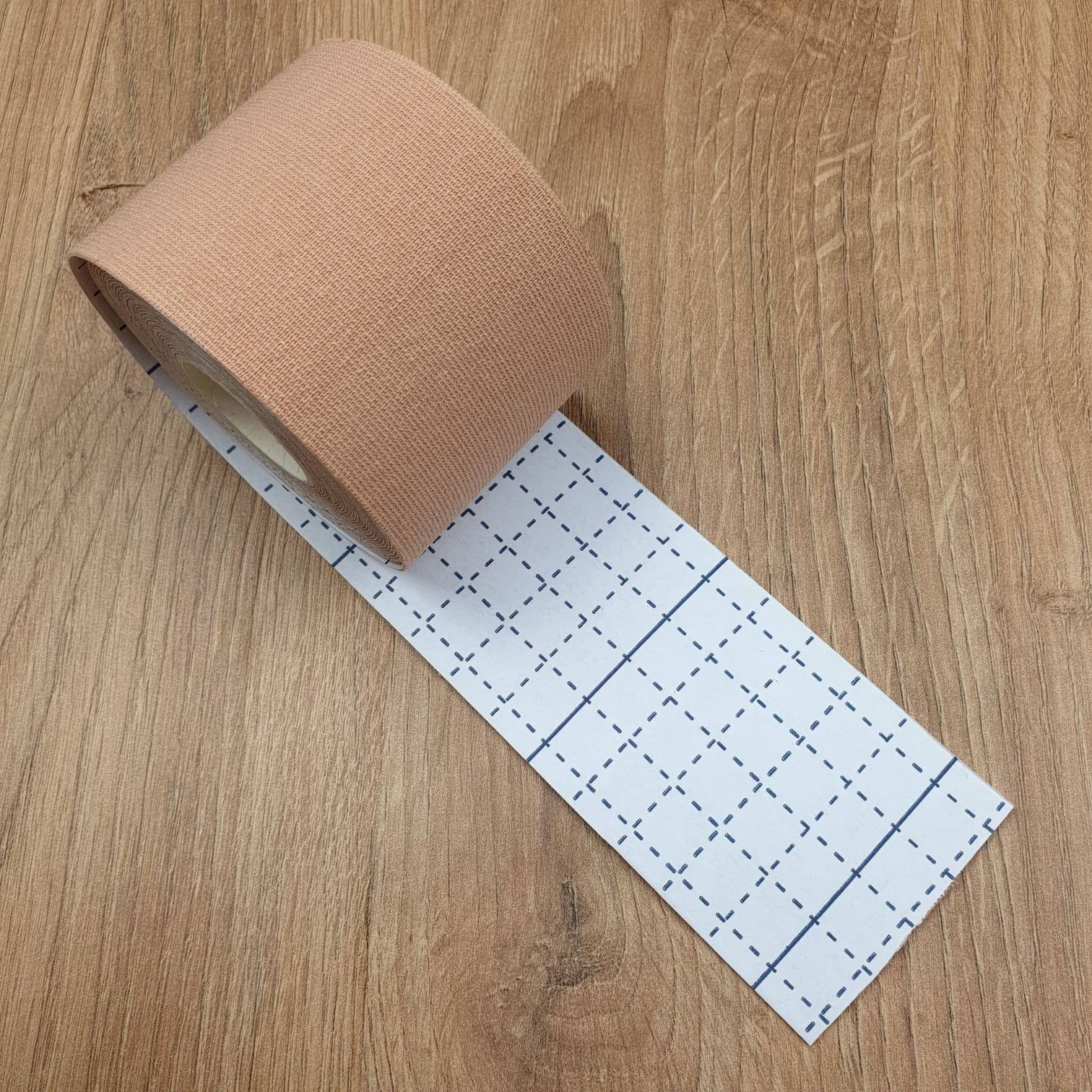 Produkt posiada klejącą stronę, która delikatnie, ale mocno trzyma się skóry, nie powodując dyskomfortu podczas noszeniaWarstwa klejąca zabezpieczona jest papierem, co ułatwia użytkowanie, umożliwiając precyzyjne odmierzenie i odcięcie odpowiedniego kawałka taśmy.
